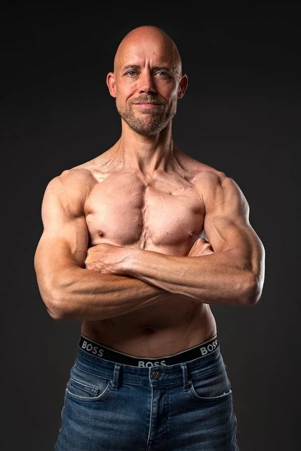 „Uitstekend. Dat het zo goed gaat, heeft zelfs geresulteerd in een mooie fotoshoot die ik heel graag wilde doen, in mei vorig jaar. Dat was de kers op de taart na heel hard werken. In de zomer van 2024 besloot ik dat ik wilde trainen tot ik zo’n beroemde sixpack had. Die had ik ooit gehad toen ik een jaar of 20 was. Fitness heb ik altijd leuk gevonden, dus ik besloot: dat moet lukken. Het was een mooie uitdaging om dat op je 52ste nog voor elkaar te krijgen. Ik was niet dik of zo hoor, ik ben best atletisch gebouwd, maar toch. Ik ben in zee gegaan met een personal trainer. Hij gaf me een sport- en eetschema, waar ik me heel strak aan heb gehouden. Het idee van een fotoshoot kwam gaandeweg en daar moest ik helemaal strak voor zijn. Het is uiteindelijk gelukt en daar ben ik trots op.”