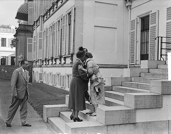 Koningin Juliana begroet de vrouw van president Roosevelt Foto: Wikimedia Commons